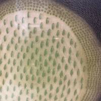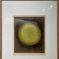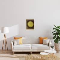 Dieser Druck von Piza zeigt eine Rundung, die an einen Edelstein erinnert: der zentrale grüne Kern symbolisiert das Herz des Berylls, während das schwarze und braune Band seine natürlichen Adern aufgreift. Die abgestuften Grüntöne rundherum und der strukturierte braune Hintergrund verleihen dem Werk eine subtile Ausstrahlung und verwandeln den Druck in ein grafisches Juwel.