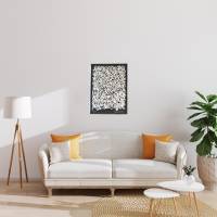 Ein Siebdruck von einem der symbolträchtigen Künstler der amerikanischen Street Art. Die Wiederholung freier weißer Formen auf schwarzem Hintergrund sättigt den Raum der Tafel und komponiert harmonisch die kreative Energie des Künstlers.