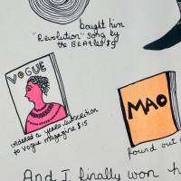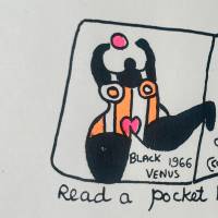 Dear Diana liest sich wie eine große Postkarte, die die Künstlerin an eine Freundin richtet. Dieser imaginäre Brief wird zu einer echten Einladung zum Reisen: Mit viel Enthusiasmus erinnert Niki de Saint-Phalle an ihre Aufenthalte in Paris, London, Marrakesch und Rom. Die bewusst kindliche Schrift verbindet sich mit humorvollen Zeichnungen und schafft ein Werk voller Energie, Fröhlichkeit und Leichtigkeit.