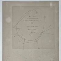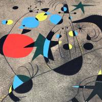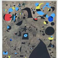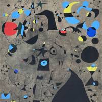 Diese schöne Platte ist ein Auszug aus der mythischen Serie der Konstellationen, die aus 23 Gouachen auf Papier besteht, die Miro 1940 und 1941 in Varangeville-sur-Mer (Normandie) und Palma de Mallorca (Balearen) malte, zwei Orte, an die der Künstler vor Paris und dem Krieg floh. Eine mythische Serie, denn entgegen seiner Gewohnheit schottete sich Miro von der Welt ab und konzentrierte sich auf sein Innenleben, hörte viel klassische Musik und schöpfte neue Kraft. Das Ergebnis ist atemberaubend in seiner Ausgewogenheit, seinem Rhythmus und seiner Dynamik. Die Serie gehört zu den von Sammlern am meisten begehrten Werken. Das MoMA in NYC besitzt die gesamte Serie.