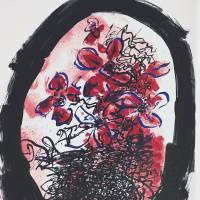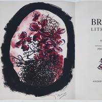 In dieser Lithografie präsentiert Georges Braque eine poetische Interpretation des Blumenstraußes – ein zeitloses Symbol vergänglicher Schönheit. Getreu seiner Überzeugung, dass man „nicht nachahmen darf, was man erschaffen will“, schafft er ein Bild, das aus der Vorstellungskraft und nicht aus der Beobachtung entsteht. Im Zentrum eines Medaillons entfalten die purpurnen Blüten ihren Glanz, verstärkt durch feine blaue Akzente. Das Ganze strahlt eine seltene visuelle Poesie aus, geprägt von Zartheit und Intensität.