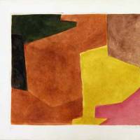 Dieser Kupferstich des russischstämmigen Künstlers und Meisters der Nachkriegsabstraktion erinnert an seine Kompositionen in Brauntönen, die er um das Jahrzehnt 1940 herum schuf. Hier greifen breite Braunflächen gleichzeitig mit leuchtendem Gelb und Mauve ineinander und dynamisieren das Ganze. Es wird von dunkleren Segmenten in Schwarz und Grün begrenzt, die gleichermaßen das Ausmaß der inneren Bewegung enthalten, die Poliakoffs Kompositionen eigen ist. Das Werk wurde in kleiner Auflage in Zusammenarbeit mit Jean Signovert in dessen Pariser Atelier graviert.