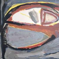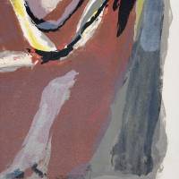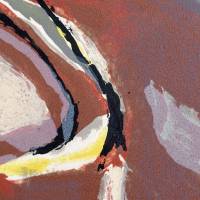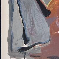In dieser Lithografie schafft der Künstler mit weißen und grauen Linien und Flächen eine dezente Geometrie. Durch die Sättigung der warmen und kalten Farben und die Transparenz der übereinanderliegenden Materialien strahlt das Bild eine gewisse Sanftheit aus.