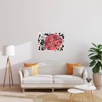 Diese Lithografie ist für die 1970er Jahre bei Joan Miró charakteristisch. Der katalanische Künstler erforscht die Tiefen der menschlichen Psyche durch den Abdruck von Handflächen, ein universelles und ursprüngliches Symbol für die Einwirkung des Menschen oder sogar seiner Schöpfung auf die Materie. Er meint dies auch durch Grautöne, freie, lineare und kurvige Formen unterschiedlicher Stärke, Spritzer und Pinselstriche in leuchtenden Farben. Der rote Kreis, der der Sonne ähnelt, sättigt den intensiven schwarzen Schatten, den die Hände hinterlassen.