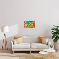 Les Codomas fängt die akrobatische Dynamik eines Traumzirkus ein, der zwischen Himmel und Manege schwebt. Die Figuren scheinen in einer Welt zu schweben, die von glühendem Orange dominiert und durch Akzente in Nachtblau, Grün und Mauve belebt wird. Dieser farbenfrohe Wirbel verkörpert die lebendige Erinnerung an eine Show, die in Matisses Fantasie verborgen ist.