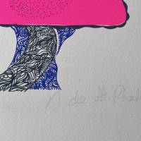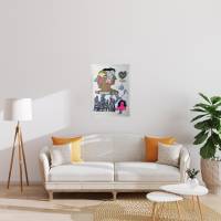 Der Siebdruck appelliert an die persönliche Erinnerung und kritisiert Autoritätsstrukturen in einer Komposition, in der die Ausdruckskraft der Linienführung und die Farbenvielfalt einer zugleich intimen und universellen Erzählung dienen.