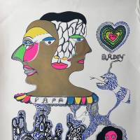 In der Serie Nana Power präsentiert Niki de Saint Phalle ein Werk von seltener kathartischer Intensität, in dem sich plastischer Elan mit einer intimen Erkundung verbindet. Der Siebdruck zeigt eine mehrköpfige Vaterfigur mit zwei Gesichtern: eines ganz klassisch und für die Gesellschaft sichtbar, das andere deformiert, fast monströs, und eine dunklere, verborgene Wahrheit offenbart.