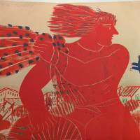 Geformt durch die Reinheit der Linie blicken sich die beiden Figuren an, ohne jemals in einen Konflikt zu geraten. Ihre farbigen Körper werden zu Symbolen der mediterranen Welt: Die scharlachrote Inbrunst antwortet auf die souveräne Ruhe des Königsblaus. Der Wind, der ihre Haare belebt, wirkt wie ein antiker Hauch, der die Erinnerung an die Götter und die Ewigkeit der griechischen Landschaft mit sich trägt.