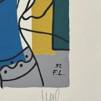 Dieses Porträt veranschaulicht Fernand Légers Ansatz, Zeichnung und Farbe voneinander zu trennen, um Formen zu befreien. Das Gesicht, umrandet von präzisen schwarzen Linien, hebt sich von den lebhaften Farbflächen ab, die sich durch die Komposition ziehen. Die Spannung zwischen geometrischer Strenge und chromatischer Fluidität verleiht dem Porträt eine skulpturale Präsenz und bringt gleichzeitig die Subtilität und Poesie der Figur zum Ausdruck. Léger demonstriert hier seine Beherrschung des plastischen Raums und verbindet Struktur und Ausdruckskraft in einer harmonischen und lebendigen Komposition.