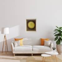 This engraving by Piza displays a circular figure reminiscent of a gemstone: the central green core symbolizes the heart of the beryl, while the black and brown band evokes its natural veins. The surrounding graded greens and textured brown background give the work a subtle radiance, transforming the engraving into a graphic jewel.