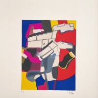 In Bougri, Maurice Estève illustrates his conception of space through curves and the superimposition of colors. The rich and intense palette harmoniously interacts with the rounded and fluid forms, revealing the dynamism of his art. Contrast and complementarity of colors combine to offer a vibrant composition, where formal rigor and plastic lightness create a visual experience that is both harmonious and poetic.