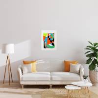 In our work, Sonia Delaunay follows this concept of the grid, a device structuring the checkerboard motif as a scheme for organizing space. She interprets it as a diagonal line of force, organizing both the dynamic movement of the composition and, through a play of chromatic contrasts, its depth. Several planes appear in the construction of the composition: the first presented by the checkerboard, the one composed of triangles and then the one composed of semicircles.