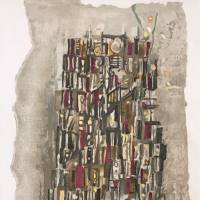In this lithograph, Vieira da Silva illustrates Senghor's elegy to Georges Pompidou, the first stanza of which initiates an exploration of India and an ode to friendship: "In the Tamil night, I think of you, my more-than-brother. The aesthetics of the poet and the series of four lithographs by Vieira da Silva draws its strength from the sacredness of signs and more specifically that of death.