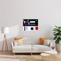 The work we propose has two levels: the flat, smooth sheet of paper, where two flat black and white surfaces confront each other. The second level is made up of rectangles, squares and a circle glued together with foam elements that enhance them and make them stand out in volume.
