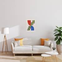 This Sonia Delaunay etching is characterized by the symmetry created by the crossing of two diagonals. On one side, red and blue curves echo each other, while on the other, a grid of green segments joins fine hatching. The overall effect is one of dynamic yet delicate energy. The composition was used to create the poster for the exhibition "Les peintres et l'art du livre" (Painters and the art of the book) at the Fête de l'Humanité held in Vincennes on September 12 and 13, 1970.