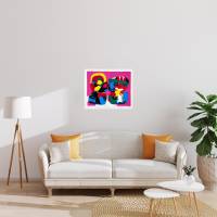 This lithograph is a powerful example of Karel Appel's chromatic power. The two figures, in vivid, contrasting colors, seem to spring from the surface. Their colorful, almost incandescent brilliance enters into tension with the fuchsia background, creating a visual shock that conveys the raw energy and élan vital so dear to the artist. With this composition, Appel asserts a style of painting free of convention, where color becomes language, a cry, living matter.