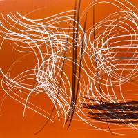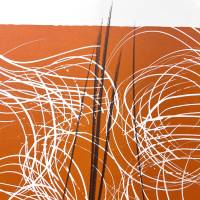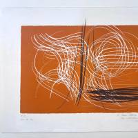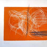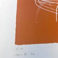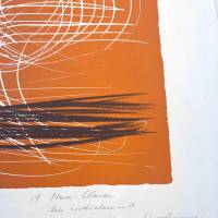 The German artist links his spontaneous, swirling gesture with white curves and black stripes, accentuated by the orange background, creating real tension in this lithograph.