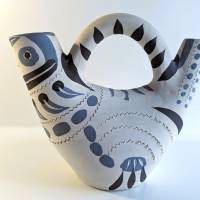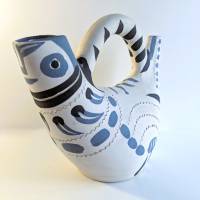 With its anthropomorphic silhouette, Pichet espagnol is rooted in a Mediterranean imagination shaped by the artist’s Iberian origins. The motifs, painted and incised on the light-colored clay, recall both the popular pottery of his childhood and the spontaneity of his line. At the boundary between functional object and sculpture, this pitcher asserts itself as a work of art in its own right.