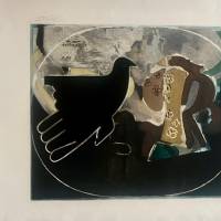 Never one for mimesis, Braque invites us into an intimate space marked by a play of transparency, where he articulates his composition around a jug, delicately adorned with evanescent floral motifs, and a bird, signified by a black silhouette encircled by a white line. Using a muted chromatic palette, the artist takes care of simple subjects, approaching a certain asceticism that renews the classicism of the genre.