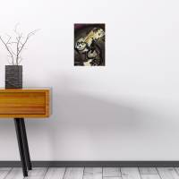This is a 100% custom-made frame, carefully crafted by a professional framer. Finishes are available in light oak, white wood or black wood, with or without mat board and plexiglass. Delivery times may vary depending on the order, with an average lead time of 10 days.