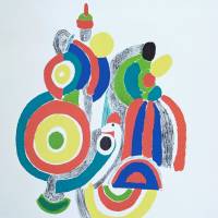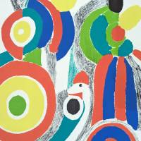 Sonia Delaunay offers a joyful composition, where colour and form create a festive atmosphere. The circular motifs are reminiscent of the world of games and the circus, while the pencil-like effect of the lines introduces a tactile, almost musical dimension to the surface of the work.