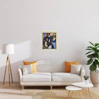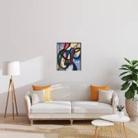 Atlan evokes the silhouette of Sagittarius through thick, dark lines that structure a colorful composition. Half-man, half-animal, the archer becomes a symbol of tension and momentum, between instinct and spirituality. Through her raw, lyrical pictorial language, the artist transforms myth into primitive force, inscribing the quest for meaning into the very matter of the image.