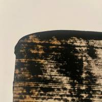 This screenprint is distinguished by the depth of black, contrasted with a burnished brown chromaticism featuring metallic accents, evoking the patina of time where light filters through corroded material. Through this texture effect, Soulages uses black to reveal light, in a subtle tension between flat opacity and luminous vibration.