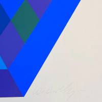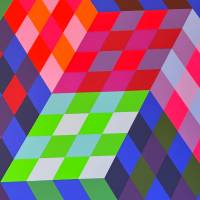 Vasarely's silkscreen plays with perspective, creating a three-dimensional structure that is both tangible and elusive. The colored squares and their variations create an effect of depth, an illusion both disconcerting and captivating. The artist explores the dialogue between shapes and colors, inviting the viewer into a sensory and visual immersion.