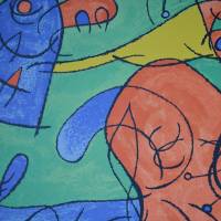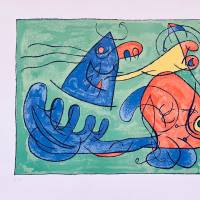 Miró plunges us into the inner nightmare of a despot. Far from a cozy world, Ubu's dream is a visual cry: strident apple green as a backdrop, disjointed lines, organic shapes in blue, red, and yellow. Sleep becomes a mental trap, where Ubu's excesses burst forth without restraint. A nightmarish theater, colored like a toxic hallucination.
