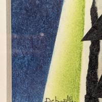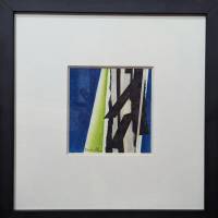 Jacqueline Debutler deploys an abstraction constructed around vertical bands that punctuate the surface and guide the eye. The superimposition of planes and subtle gradations of blues and greens create a silent depth, while the use of black and white provides accentuation, reinforcing the visual tension. The work offers a sensitive meditation on the balance between structure and perception.