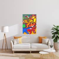 Our gouache by Bengt Lindström (1925-2008) shows the artist's closeness to the mythological imagination of the Sami people of northern Sweden and their shamanic traditions. The vibrant, restrained colors seem to merge with the movement of the composition and the brushstrokes. The artist uses navy-blue rings to reveal characters with twisting silhouettes and bemused faces.