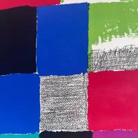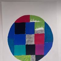 Una obra de gran formato del artista de origen ucraniano, típica por su abstracción geométrica marcada por el color. El conjunto de cuadrados compone una densidad singular comprendida en la totalidad del círculo y que se destaca de los límites impuestos por el papel.