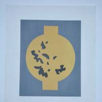 Hans Arp prolonga aquí uno de los gestos fundadores del dadaísmo: dejar caer fragmentos, confiar en el azar para crear una imagen. Las formas negras parecen surgir del mismo proceso creativo. Pero aquí, lo aleatorio se canaliza. El jarrón amarillo, sencillo y sólido, acoge el desorden sin huir de él.