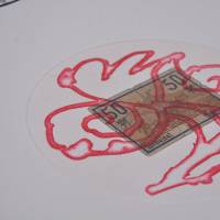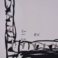 Pierre Alechinsky estructura la composición en torno a un contraste entre la respiración y la saturación. La parte superior, abierta y silenciosa, presenta un billete sobre el que se despliegan curvas rojas de carácter vegetal. Más abajo, el espacio se estrecha y se oscurece: las formas serpenteantes se entrelazan, sugiriendo un mundo subterráneo donde la línea se vuelve más nerviosa y compacta.