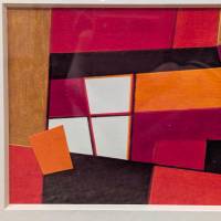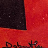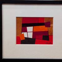 Fiel a su lenguaje depurado, Jacqueline Debutler explora aquí la fuerza expresiva del color a través de una composición geométrica magistral. Los degradados que van del escarlata al burdeos infunden una verdadera potencia cromática, mientras que el negro estructura la obra. Entre la superficie plana y la ilusión de profundidad, el collage invita a una lectura progresiva, atenta a las variaciones cromáticas.