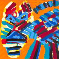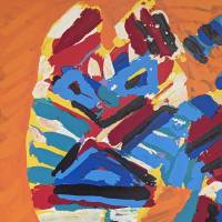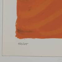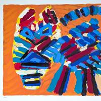 Esta litografía es un poderoso ejemplo de la potencia cromática de Karel Appel, figura importante del grupo CoBrA. El gato, de colores vivos y contrastados, parece brotar de la superficie pictórica, llevado por una gestualidad espontánea e instintiva. Su brillo colorista, casi incandescente, entra en tensión con el fondo naranja, creando un choque visual que transmite la energía bruta y el ímpetu vital tan apreciados por el artista. Con esta composición, Appel afirma un estilo de pintura libre de convencionalismos, donde el color se convierte en lenguaje, en grito, en materia viva.