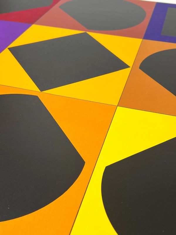 En nuestra obra, dominada por los tonos ocres y topacio, Vasarely interpreta la estructura geométrica del círculo. Introduce una cierta perturbación de la forma que, junto con el juego de colores vivos, crea un ritmo particular que sólo este maestro franco-húngaro del arte cinético puede crear.