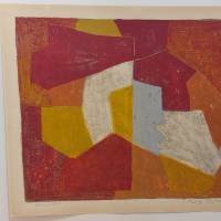 Poliakoff construit ses images comme on érige un mur : pierre après pierre, couleur après couleur. Dans cette lithographie, chaque teinte est profonde, mate, presque minérale, s'insérant à merveille comme une pierre érigée au sein d'un édifice. Le carmin impose la chaleur, le brun la densité, le jaune une lumière contenue, et le gris une respiration, les couleurs s’imbriquent sans se heurter. Cette composition maîtrisée confère à l’œuvre une solidité presque architecturale.