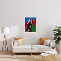 L’artiste belge, en illustrant le roman de Gaston Leroux, nous plonge dans un univers où la naïveté s’efface devant une profondeur sombre. Vêtus de noir, Christine et Erik semblent surgir d’un film ancien, leurs silhouettes tranchant avec des couleurs vives. Cette sérigraphie de Corneille crée une puissante émotion, mêlant brutalité et beauté tragique.