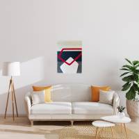 Debutler privilégie le contraste entre zones pleines et réserves blanches, avec une attention particulière portée à l’équilibre des masses. Plutôt que de se livrer à des essais spontanés, elle privilégie une création soigneusement réfléchie, faisant de la gravure un champ d’expression pour une forme géométrique pure, accentuée en noir et blanc avec de touches de rouge.