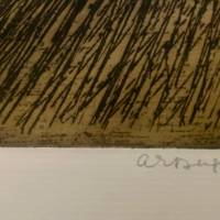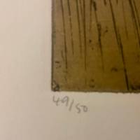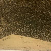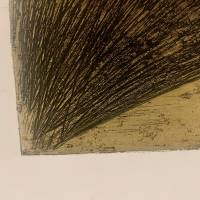 Le fond doré renvoie directement aux recherches que l’artiste mène alors autour des matériaux métalliques, inspirée par la technique de la feuille d’or médiévale à laquelle Christian Lange l’avait initiée en 1942. Transposée à la gravure, cette lumière métallique confère à l’œuvre une vibration particulière : elle n’éclaire pas la scène, mais émane d’elle, affirmant la dimension sacrée et universelle que Bergman attribue à la nature dans sa conception panthéiste.