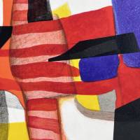 Cette lithographie révèle la maîtrise de ce grand coloriste dans l'art de la construction géométrique. À travers un jeu de lignes courbes et de transparences colorées, une grande douceur se dégage de l'œuvre d'Estève. Il estompe, superpose et manipule la lumière et les couleurs pour créer un équilibre délicat entre abstraction et émotion.