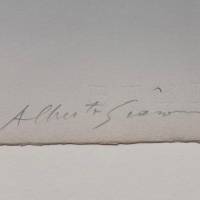 Cette lithographie, par sa simplicité extrême, incarne la quête essentielle de Giacometti : dire l’être dans sa plus nue présence, affirmer la dignité de la figure humaine face à l’immensité. Homme debout et Soleil est moins une scène qu’une expérience de regard, un face-à-face silencieux entre la lumière et l’existence.