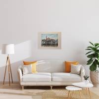 Dans Isola di San Giorgio Venezia, Bernard Buffet saisit la beauté solennelle de Venise, qu’il qualifiait d’« éblouissante, immuable». Fasciné par la cité des Doges, il traduit son admiration mêlée d’inquiétude dans un trait à la fois rigoureux et mélancolique.
