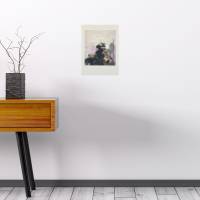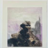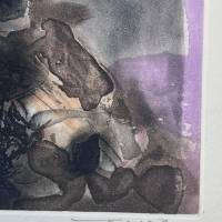 Une gravure magistrale de l’artiste franco-chinois qui excelle déjà dans les années 1970 dans les effets aquarellés et vaporeux qu’il insuffle dans ses compositions. Zao Wou-Ki et explore la richesse des variations lumineuses et profondes du jade, du violet et de l’anthracite, créant un mouvement intense.