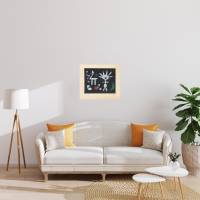 L’eau-forte et aquatinte d’après Joan Miró que nous proposons est caractéristique de ses œuvres des années 1950. On y trouve une composition aérienne, un fort contraste de couleur entre le fond noir et les motifs blancs, quelques touches de couleurs comme des points de lumière qui donnent vie à l’œuvre.