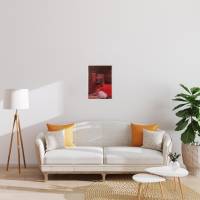 L’artiste d’origine italienne transforme l’espace d’un intérieur en un espace sacré, par la présence d’un bénitier entouré d’objets du quotidien, ses véritables sources d’inspiration. La couleur rouge et le rendu flou confèrent une certaine sensualité à la composition.