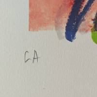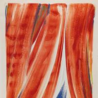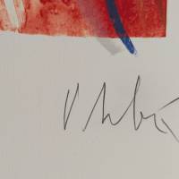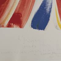 Tel un rideau de lumière, la lithographie s’anime d’un geste ample et fluide. Olivier Debré y retrouve la liberté du mouvement, proche du lavis, où la couleur semble respirer, s’étendre, se retirer comme dans ses rideaux de scène. La surface devient un espace de circulation sensible, une peinture en suspens, où chaque nuance porte la trace d’un rythme intérieur. Le rideau n’occulte rien : il devient métaphore du passage, frontière vivante entre le visible et l’émotion.