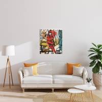 L’artiste représente l’un de ces thèmes favoris lui permettant d’aborder la construction de l’espace urbain et plastique : les ouvriers. Une dualité s’installe entre le dessin au cerne noir et les lignes droites, et les formes ondulaires et vivement colorées traversant la composition.