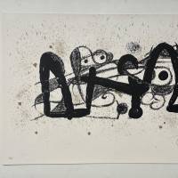 Miró aimait expérimenter différentes techniques pour obtenir des textures singulières. Les zones de lavis, les traits incisifs et les éclaboussures d’encre semblent être créés par le hasard. Ce jeu d’accidents maîtrisés, où la matière semble prendre vie, donne naissance à une composition vibrante.